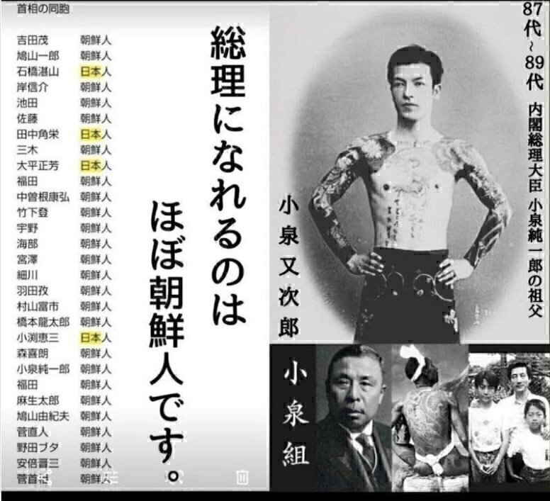 小泉進次郎のお爺さんは「刺青のマタちゃん」と呼ばれていた横須賀のヤクザで在日朝鮮人でした。あの、東京大空襲を遂行したカーチス・ルメイに対して「勲一等旭日大綬章」を時の佐藤栄首相に推奨した男がこいつですよ。↓↓↓じっちゃんやわ!